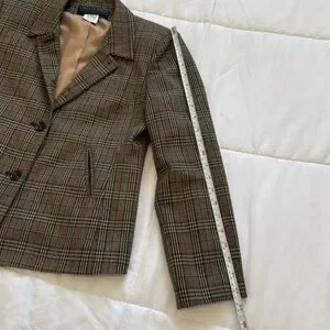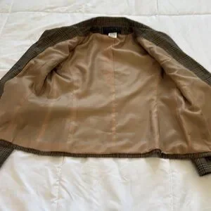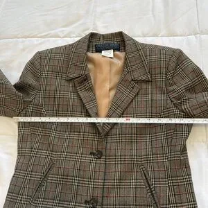 Harve Benard Plaid 100% Wool Blazer Sz 6P Tan, Black, & dusty red.