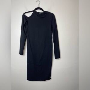 Monrow NWOT Black Cotton Jersey knit Cut Out Shoulder Dress S USA Minimalist