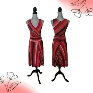 ✨Turn heads in this curve-enhancing Alyn Paige sleeveless wrap dress, perfect for everything from wine nights, dancing, to weekend brunches. Featuring a bold diagonal stripe print in red, black, and white, this dress cinches effortlessly at the waist to accentuate your figure for a flawless fit. The flared knee-length hem adds feminine flair while the spandex blend offers stretchy comfort that moves with you. 💃🏻