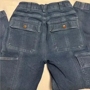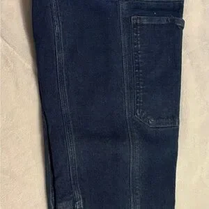 Durable women’s work jeans. Excellent condition. I would keep these if they still fit but there isn’t much give, as the jeans are made mostly of cotton!