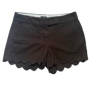 J.Crew Women’s 00 Scalloped Hem Shorts Linen Cotton Black Preppy 3.5” Inseam EUC