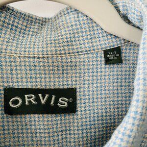 Orvis Mens Blue Long Sleeve Houndstooth Preppy Carear Button Up Shirt Size XLT