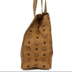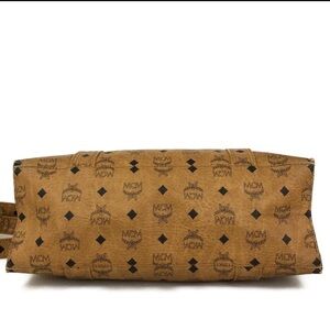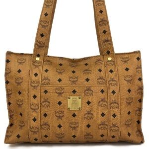 MCM Logo Visetos Leather Shoulder Tote Bag Brown