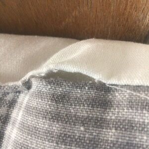 One inch (1”) opening in bottom seam as starting point if you ever need to wash the pillow cover or replace the pillow. (See closeup in last photo)