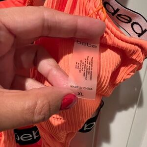 NWOT Bebe ribbed Orange and black Cutout One Piece Swimsuit