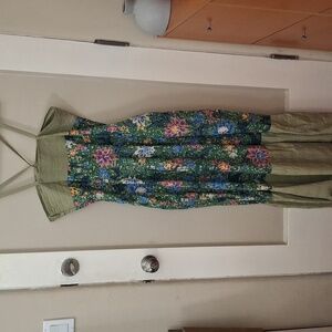 NWT Anthropologie Floral Green Maxi Strap Dress_1