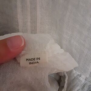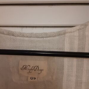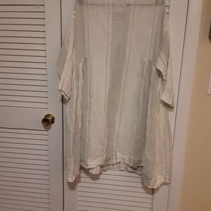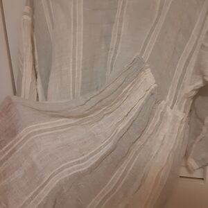 Elegant white tunic dress with subtle stripes. Perfect for casual outings. one size. has pockets. %100 linen. Smoke-free home.