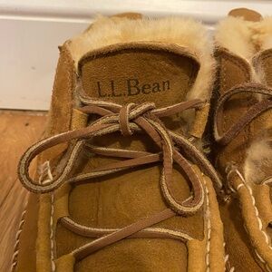 Great condition L.L.Bean moccasins with cute laced front. Fur lining is very cozy.
