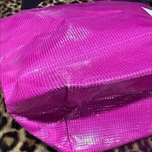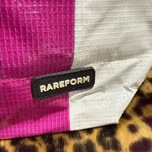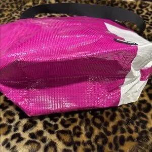 Discover the perfect blend of style and functionality with the RAREFORM tote bag. This bag is made from recycled billboards. Each bag is unique and no two are alike. Featuring a striking pink and white design, this bag is ideal for any occasion. Minor blemishes on the pink corners