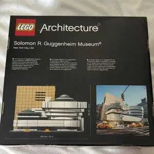 Retired Lego Architecture Solomon R. Guggenheim Museum # 21035. Features intricate details and modern design with 744 pieces. Brand new in sealed box. Box has shop damaged and a sticker on front of box.