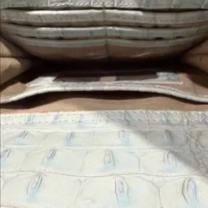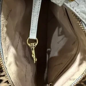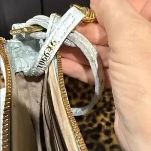 Chic Brahmin crossbody with crocodile texture. Elegant gold-tone accents. Perfect for versatile styling. Minor imperfection pictured on front of bag and small dot on the tassel.