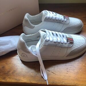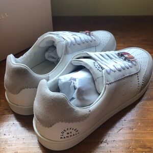 Loeffler Randall Sneakers Womens Size 9 White Grey Beaded Detail Perforated Modern