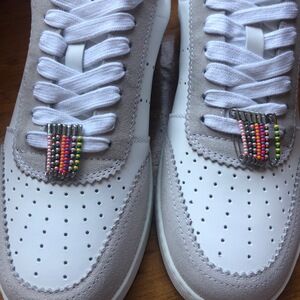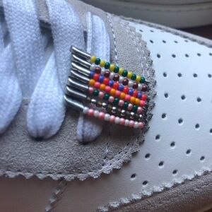 Loeffler Randall Keeley Low Top Sneakers W Size 9 White Grey Beaded Safety Pins