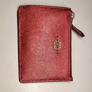 Coach Metallic Red Textured Zip Card Holder