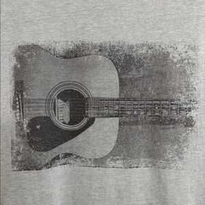 Casual short sleeve tee with guitar print. Soft fabric for everyday wear.