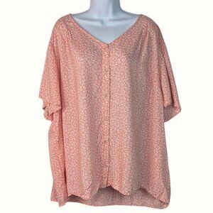 Croft & Barrow Pink White Floral Short Sleeve Button Up Blouse Plus Size 3X