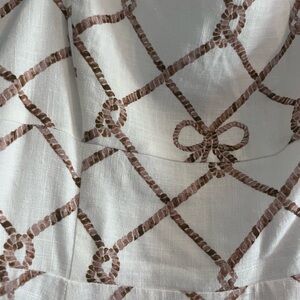 Chic mini dress by Hill House. Features a white base with tan geometric pattern. Sleeveless with a square neckline. Perfect for casual outings. Reposhing this item it is still in perfect condition just decided I no longer need it for a trip.