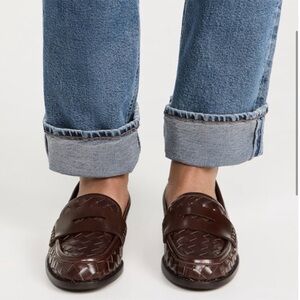 Loeffler Randall Rachel Woven Leather Loafers Espresso Brown NEW