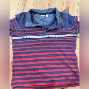 L.L. Bean shirt with navy and red stripes. Casual and versatile.