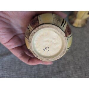 Bay Keramik 523-20 Abstract Ewer & Vessel Set, West German Pottery, VGC, 70s/MCM. The small vessel/cup is in excellent used/vintage condition with no damage noted aside from some discoloration on the interior; the ewer has been repaired in multiple places and also has a chip on the handle (see photos for all). I have not been able to identify the style number of the vessel, but I believe it is 523 for the ewer based on visual similarity.