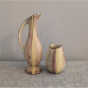 Bay Keramik 523-20 Abstract Ewer & Vessel Set, West German Pottery, VGC, 70s/MCM