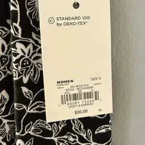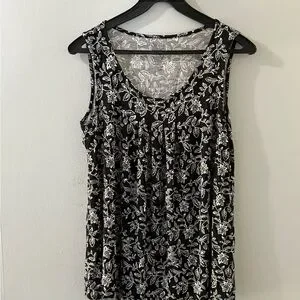 Croft & Barrow Black and White Floral Pleated Tank