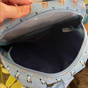 Bluey character backpack with colorful design. Includes matching water bottle.