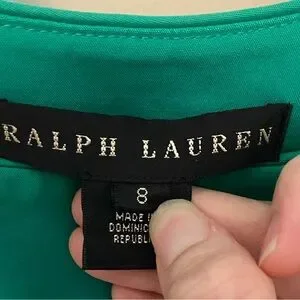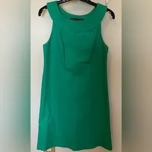 Very Good Pre-Owned Condition Authentic Ralph Lauren Women’s Size 8 (Regular) Hampton Green Cap Sleeveless Seamed Drop-Waist Lined Hidden Zipper Back Closure Knee-Length Dress.