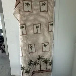 Enhance your bathroom with this elegant shower curtain featuring a palm tree design. The cream and brown colors add a touch of nature-inspired style to your space. Palm tree curtain rings included*