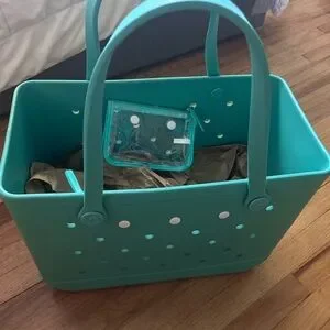 Stylish turquoise tote bag by Bogg. Perfect for beach or casual outings. New with tags. Never used.