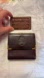 Luxurious dark burgundy leather card holder by Cartier. Features elegant gold corner accents. Ideal for sophisticated style.