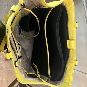 In great condition! This was my everyday work bag and it’s crazy how much could fit in here— it can fit both my MacBook Pro 16” and my MacBook Air 13”, a bunch of books/notebooks, my make-up bag, water bottle, etc. It has a few scuffs and one pen mark (pictured) but it’s hardly noticeable. I hate to part with it because it has so many compartments and I loved wearing it, but I was gifted a new Dagne Dover work tote so I never reach for this one anymore.