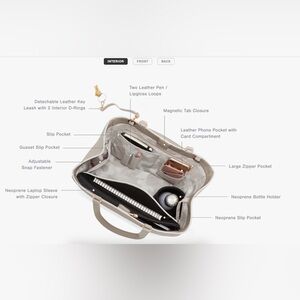 Inspired by late nights at the office and impromptu weekend adventures, the Large Allyn Tote will elevate your style as fast as you can grab your phone from the exterior slip pocket. While the magnetic tab closure gives you more space when you need it, the interior snap fastener provides additional security and an alternative way to carry. A neoprene laptop sleeve and bottle holder ensure your essentials are secure in place, and protected. Thoughtful interior pockets keep everything organized while on the go. Allyn was made for those who perfectly balance fashion and function, everyday.