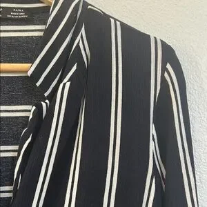 Discover elegance with this stylish black and white striped blouse. Perfect for both casual and formal settings, it offers a timeless appeal. Size XL