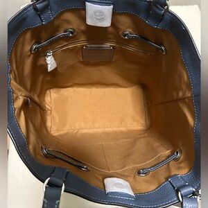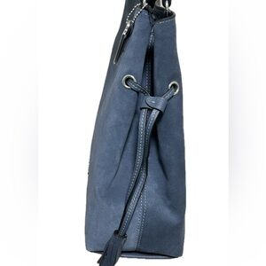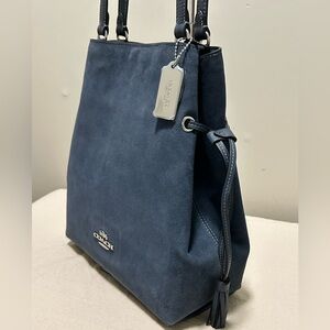 COACH Andy Suede and Pebble Leather Tassel Cinch Tote in Denim Blue NWT