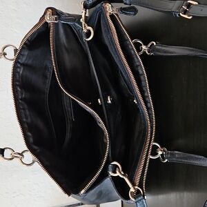 Very well made and well loved bag! Signs of use throughout but lots of life left in her! Stains inside but tons of pockets and slips. Mild peeling of rubber seams in places, leather piece missing on back buckle- please see pictures. Price reflects this.