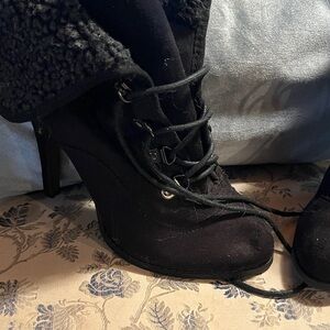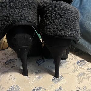 Elevate your style with these elegant black fur-lined heeled boots. Perfect for any occasion, they offer both comfort and sophistication.