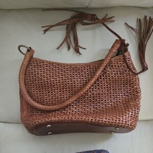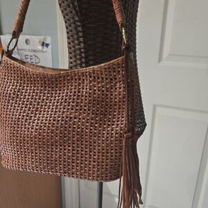 Discover the perfect blend of style and functionality with this elegant Patricia Nash brown woven leather handbag with tassels . Ideal for any occasion, this bag adds a touch of sophistication to your outfit.