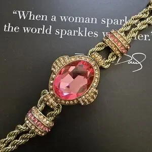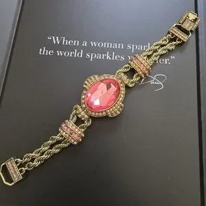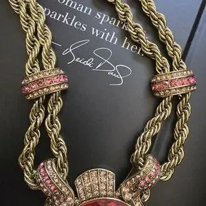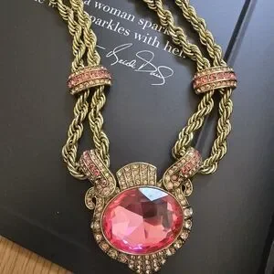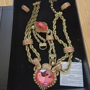 Heidi Daus Gold and Pink Statement Necklace, Earring, Bracelet Set