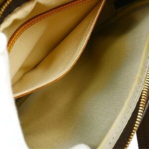 Stylish Louis Vuitton messenger bag with iconic monogram. Features brown and tan design. Ideal for daily essentials.