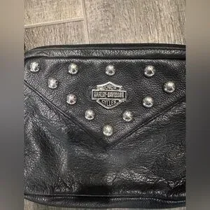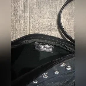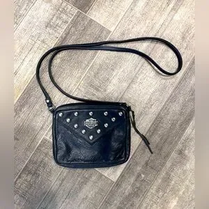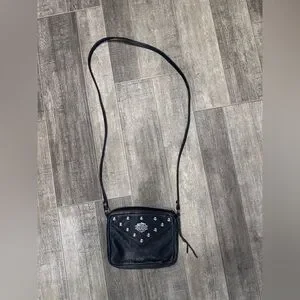 Stylish Harley-Davidson crossbody bag. Black leather with silver stud accents. Perfect for everyday use.