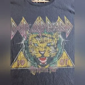 Show off your style with this Def Leppard graphic tee. Featuring a bold design for the Hysteria tour in 1987. The shirt is in good condition with no holes, some slight fading on the back graphic (pictured)