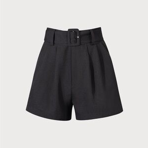 Rihoas Black High-waisted Pleated Belted Shorts