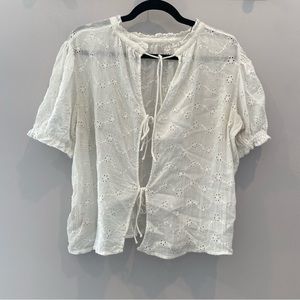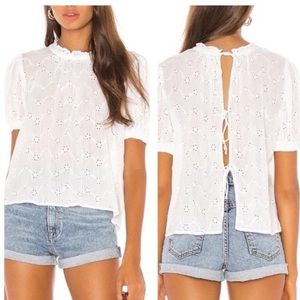 FREE PEOPLE Letters To Juliet Eyelet Top White Puff Sleeve Tie Back Boho Medium