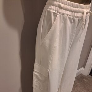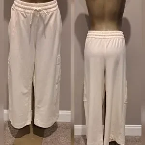 Athleta Cream Color Elastic Waist Wide Legged Cargo Sweat Pants