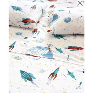 NEW GARNET HILL White Rockets Twin Flat And Fitted Sheet Cotton Percale