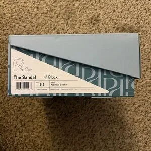 Size 5.5 “ Neutral snake “ color with a 4inch block heel that can be converted to flats in case you need to give your feet a break.