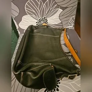 Chic black hobo bag with tan accents. Perfect for everyday use. Stylish and versatile design.Leather. Stains on the inside. Immaculate on the outside. This is from my personal collection. The price is non-negotiable.