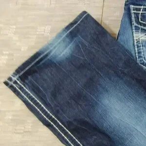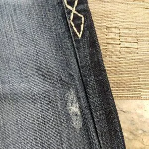 There is a distress spot on the back leg. See photo before measurements. This could be from the factory, but wanted to point it out. Not a hole, looks similar to the other distressing. It is in one of the whisper creases.