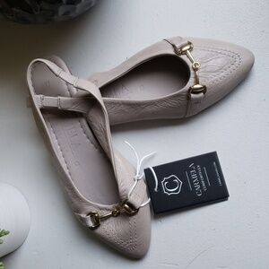 Carmela Women's Chic Beige Pointed Toe Slingback Flat Leather Loafers. NWT